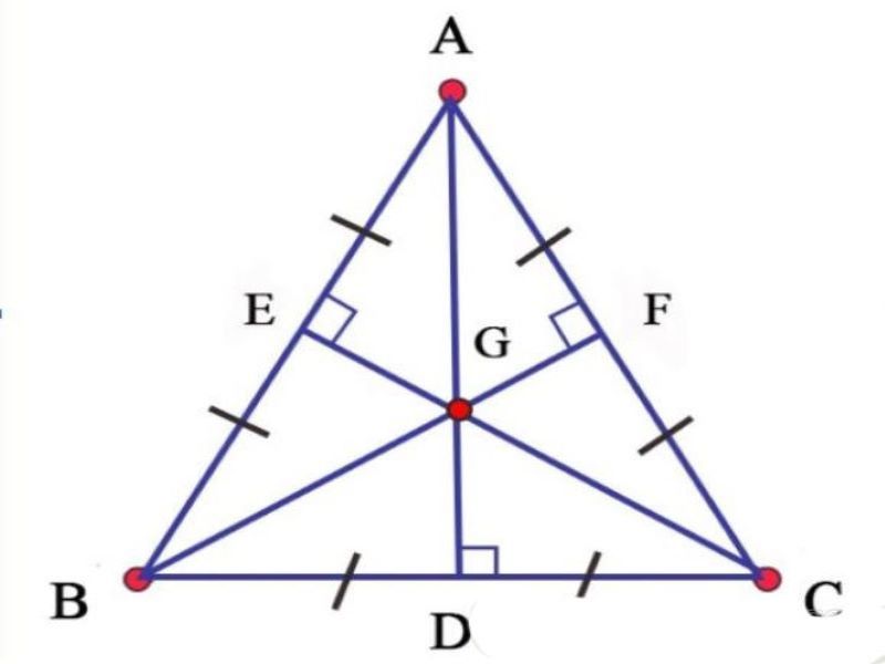 Ba đường trung tuyến đồng quy tại trọng tâm (G).